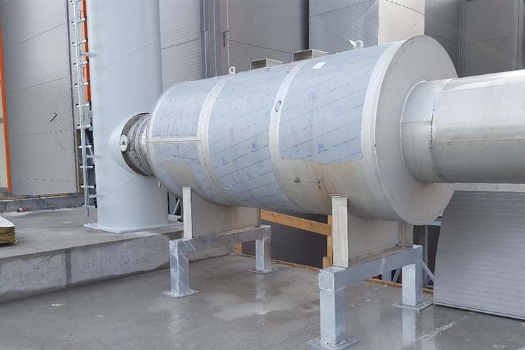 From boilers and turbines to engines, fans, and process plants, our industrial silencers cover an exceptionally wide range of applications. As in the element sector, we offer all common silencer types — absorption, resonance, reflection, and combined exhaust silencers, as well as sound insulation cores designed for installation in free-standing chimneys.