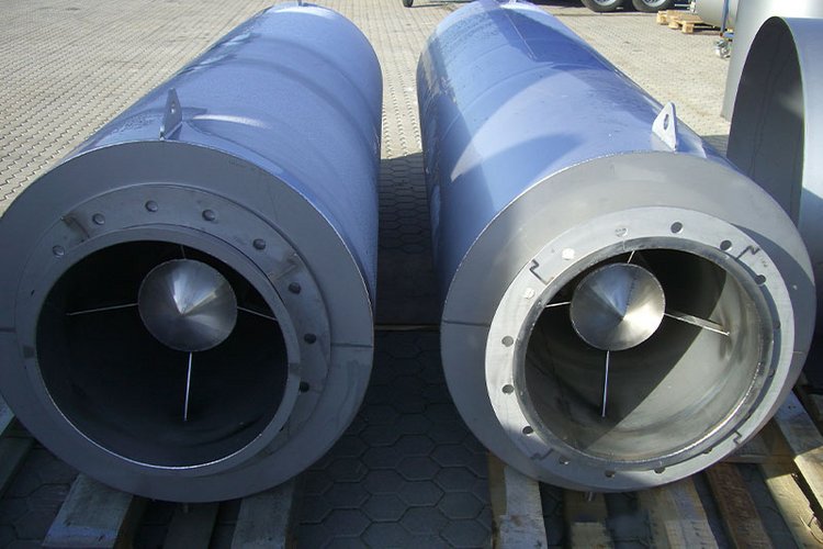 Our portfolio also includes specialized designs developed specifically for industrial use — such as angular splitter silencers, vertical silencers, and coated standard steel silencers with greater wall thicknesses - frequently used in engine systems.